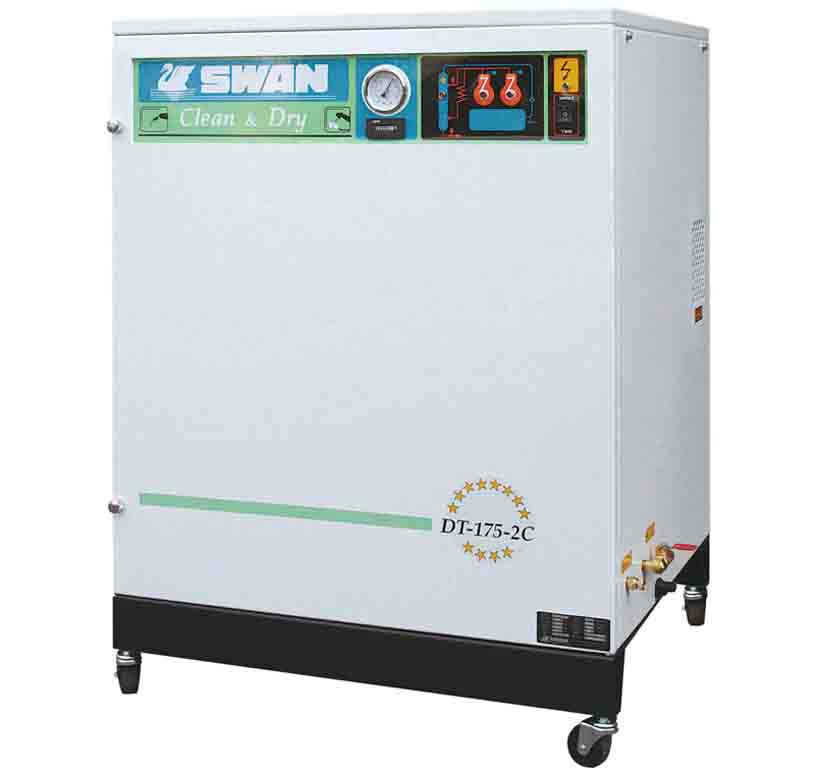 SWAN DT series air compressors, with environmental concerns, are designed to provide oil-less & dirt-free purified compressed air to meet with your needs. Inner surface is coated with epoxy (optional) to avoid rusting. Made of high strength steel. Equipped with safety valve to ensure safe operation. No additional lubricant is required, and no air pollution.