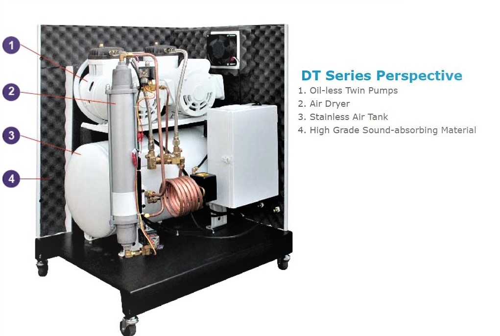 These dental series of compressors are specially customade to meet the most purified standard of compressed air in dental and medical applications.